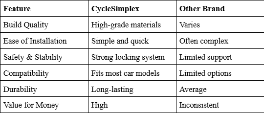 When choosing a tricycle rack, quality and reliability matter. Cycle Simplex stands out by focusing on safety, durability, and user comfort. This comparison clearly shows why CycleSimplex offers better value and peace of mind for families and travelers.